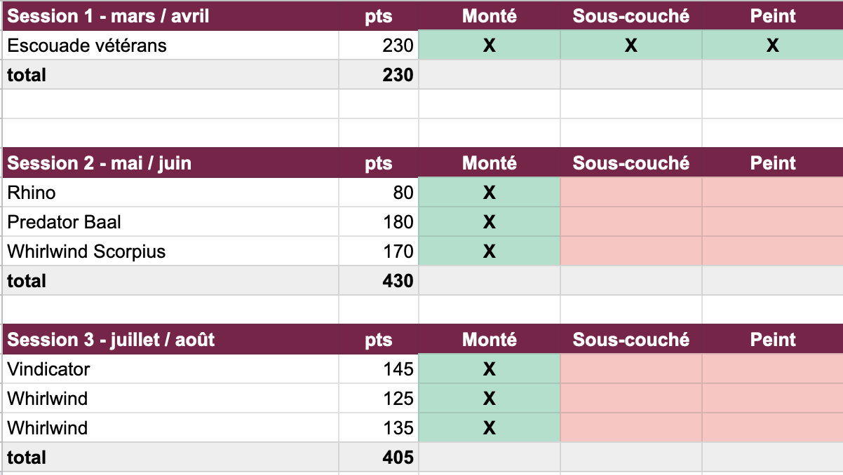 A l’issue de la première partie, mars-avril 2022, j’ai donc peint une escouade de vétérans, comme le montre le tableau ci-dessous, avec aussi la suite des réjouissances.