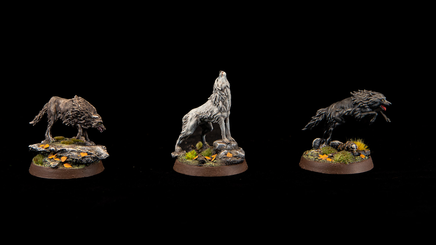 Pour la peinture, j’ai fait quelques recherches, me permettant de faire un loup noir et un blanc… et de me rater sur le dernier. Si j’avais vu le tuto de Greygauric plus tôt, j’aurais pu l’appliquer et avoir un troisième loup plus réaliste. M’enfin, il est peint maintenant, et je me contenterai de ça, jusqu’au prochain loup à peindre (il doit me rester un clone de Croque-Mage quelque part).