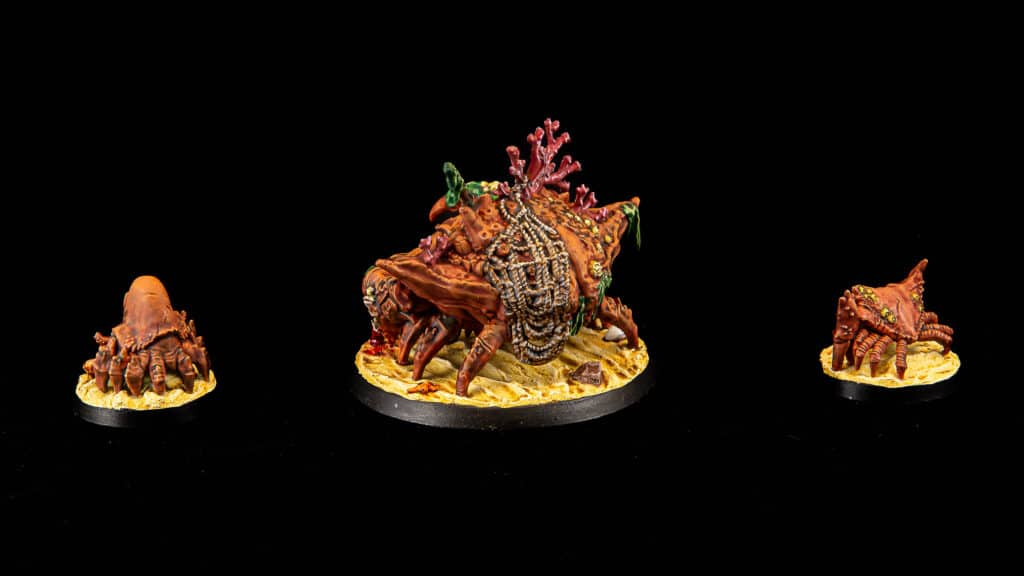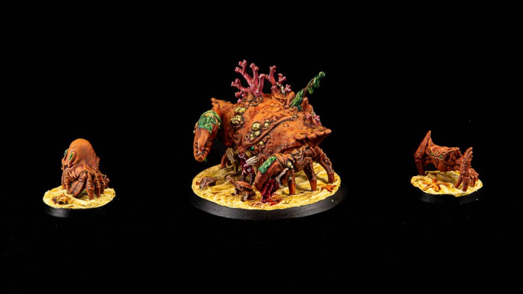 Dans la continuité des bestioles hostiles précédentes, j’ai peint ces crabes, toujours issus d’un KS Dungeons & Lasers.